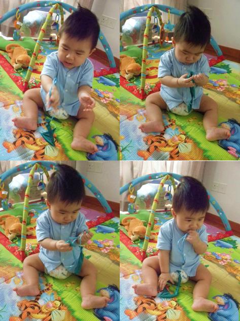 Often, Kenan would appear thrilled with a certain toy at the store, but once we buy it home, he would probably play it a while and then chuck it aside. Then he will go back to some simple toys like balls, or he will fiddle with bottles, empty boxes and whatever knick knacks he can lay his tiny hands on. When that's done, he will go on an exploration trip around the house, attempting to open drawers or cupboard doors and emptying the contents. But often, he will be happy just to 'read' his books or our magazines (books are possibly our best buys as he really loves them).